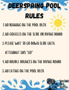 - "Script" for employees to announce during busy hours/camps that remind patrons of rules at the pool; continually reinforcing.