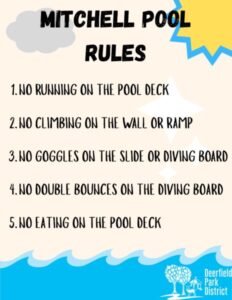 Aubrey and I started off our meeting by going over changes of my task of making a poster for common pool rules that we see broken. After getting your feedback about preferring graphics over more signage, we decided on the idea of me making graphics online specific to Mitchell and Deerspring rules which I plan to have done before Friday. After this we started talking about my second task of making a script of our pool rules to be announced throughout the day, and at camps arrivals. We will be working together to perfect the script to leave it in such a manner that enforces rules amongst our patrons while also leaving a positive note that lets them know we just want them to be safe.
